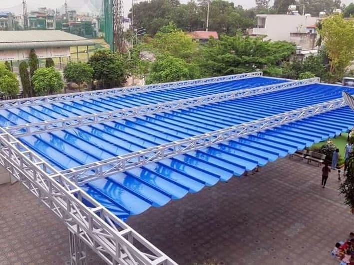 Mái xếp che nắng mưa cho khu vui chơi, trường học :