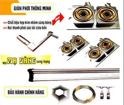 sản phẩm giàn phơi được sản xuất trên công nghệ hiện đại của nhật bản với chất liệu hợp kim nhôm cao cấp nên luôn luôn sáng bóng vận hành êm ái nhờ vòng bi được cải tiến