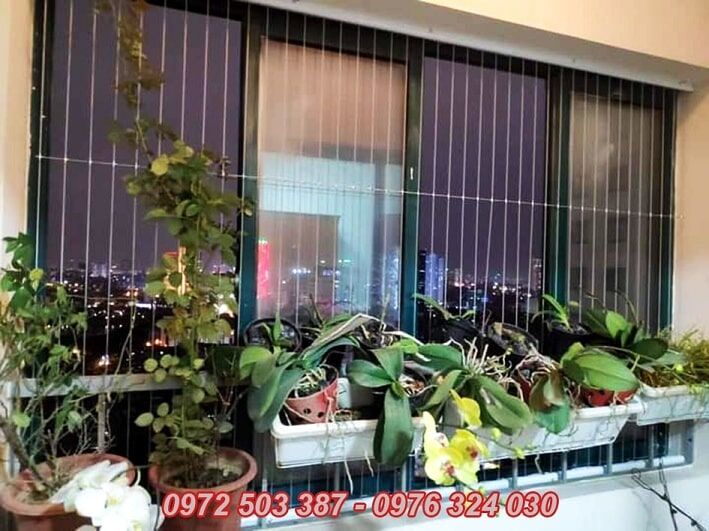 Lưới an toàn cửa sổ : che khoảng không cánh cửa mở cũng giống lưới ban công sau khi căng dây xong thì nên kẹp thêm đường ngang tăng thêm độ chắc chắn .