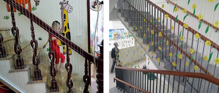 Trường học là nơi học tập của các em từ mẫu giáo cho đến hết trung học phổ thông , thường là thiết kế hành lang cùng với ban công rộng những em học sinh từ trung học phổ thông trở xuống và đặc biệt là các lớp tiểu học thường hay đùa nghịch ngoài hành lang mà chưa ý thức được sự nguy hiểm của độ cao vậy biện pháp căng cho ban công một lớp lưới an toàn là hết sức cần thiết