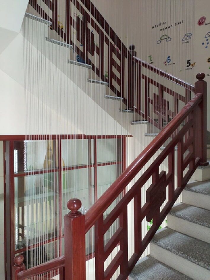 Lưới an toàn cầu thang là hệ thống gồm các sợi cáp inox chịu lực, được căng đều từ tay vịn cầu thang lên trần hoặc dầm bê tông. Khoảng cách giữa các sợi thường chỉ 5cm, đảm bảo trẻ nhỏ hoặc vật dụng không thể lọt qua.