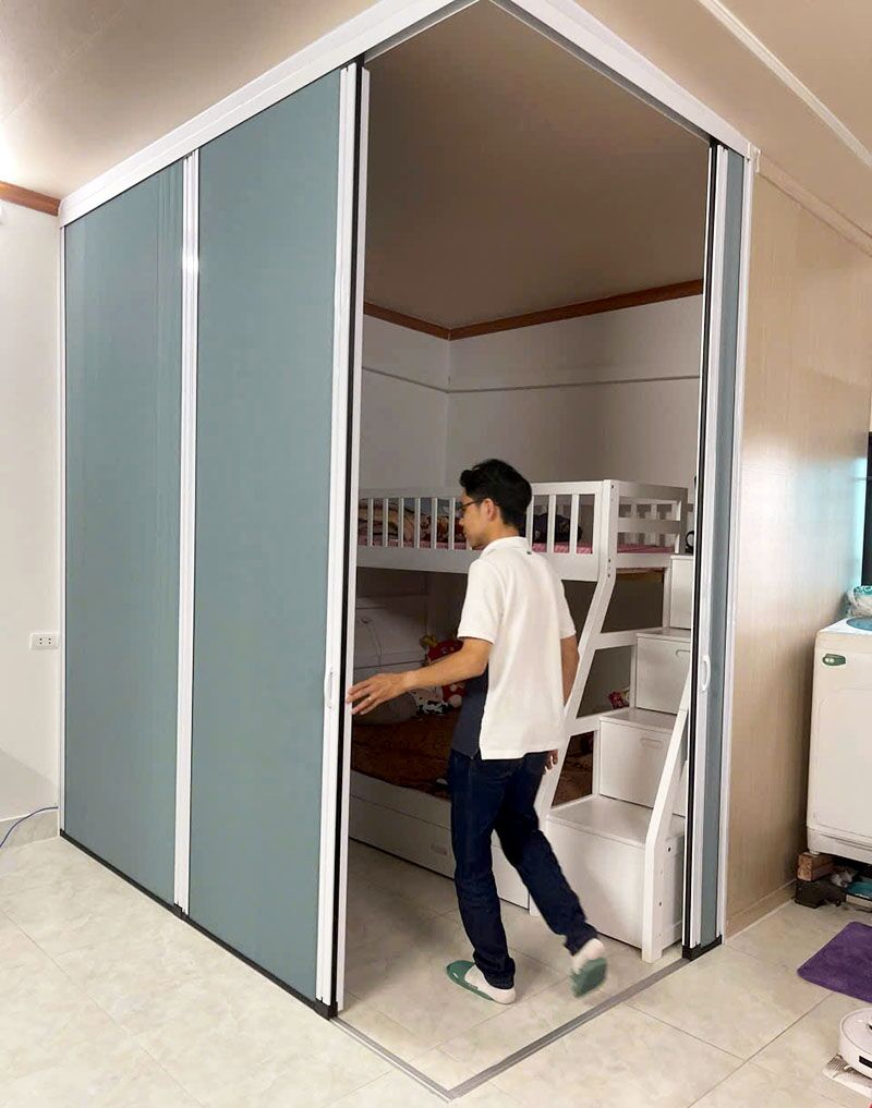 - Làm vách che di động cho phòng ngủ, chung cư nhỏ, nhà ống